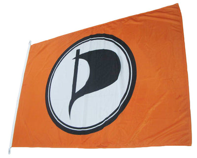 Drapeau orange avec le signet de la Parti Pirate.