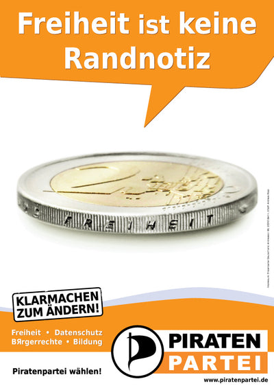 Affiche DIN A1 avec l'inscription La liberté n'est pas une note de bas de page, sans date d'élection et avec l'URL piratenpartei.de