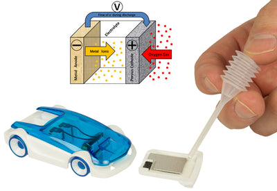Il suffit de déposer une goutte d'eau salée sur la fine plaque de magnésium (dont le kit contient 4 pièces) pour déclencher une réaction dans laquelle le magnésium est oxydé par l'oxygène de l'air et l'eau salée. Pour permettre cette réaction, une électrode supplémentaire en charbon actif fait office de catalyseur. L'énergie électrique est libérée et est finalement utilisée pour faire rouler la voiture pendant environ 15 minutes.