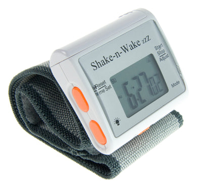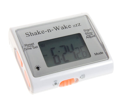 En plus de réveiller, le réveil Shake and Wake à vibrations peut afficher l'heure, le jour de la semaine et la date et dispose d'une fonction de répétition et de chronomètre. De plus, une alarme horaire peut être réglée. L'écran a un rétroéclairage bleu.