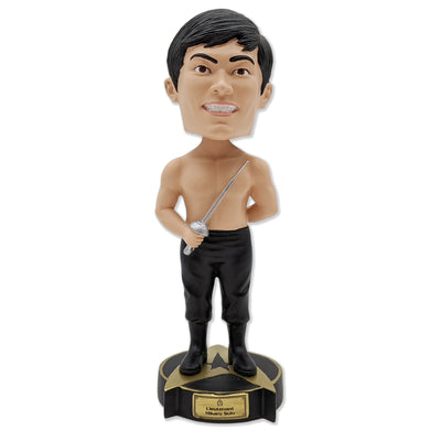 • Figurine à tête branlante de Hikaru Sulu de Star Trek ; Montre l'officier torse nu avec une épée ; Inspirée de l'épisode "The Naked Time" (S01E06 TOS) ; Produit sous licence officielle