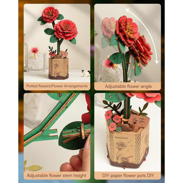 Description Kit de construction en bois Camélia rouge