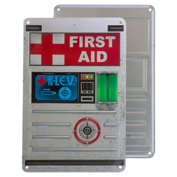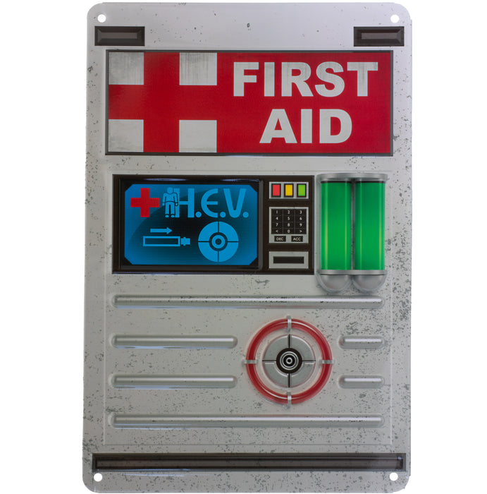 • Plaque en tôle avec l'image d'une station de régénération de la santé tirée d'un célèbre jeu de tir à la première personne